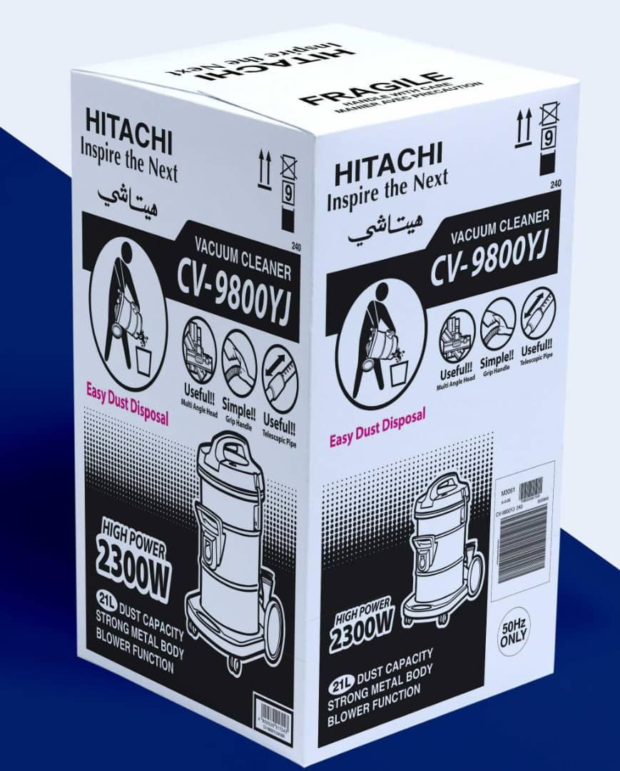 جاروبرقی «هیتاچی» مدل «CV-9800YJ» یکی از قدرتمندترین جاروبرقیهای ارائه شده به بازار توسط این شرکت است. این جارو در دسته جاروبرقیهای سطلی قرار میگیرد و دارای ظرفیت مخزن داخلی 21 لیتر است. گنجایش قابلتوجه این جاروبرقی، آن را به انتخابی مناسب برای انواع سالنهای بزرگ همچون، فروشگاهها، مساجد و بهویژه رستوران و هتلها تبدیل کرده است. جاروبرقی CV-9800YJ میتواند حجم بسیار زیادی گردوغبار و زباله را بدون نیاز به تخلیه مخزن در خود جای دهد. موتور پرقدرت این دستگاه از توان مصرفی 2300 وات برخوردار است و از بدنه فلزی ساخته شده است که در برابر ضربه از استحکام زیادی برخوردار است. همچنین این مدل علاوهبر زبالههای خشک توانایی جذب مایعات را نیز دارد. از دیگر ویژگیهای کاربردی این مدل امکان تنظیم قدرت مکش آن است و در هنگام کار با سطوح مختلف کاربر میتواند میزان مناسب مکش را انتخاب کند. با استفاده از قابلیت چرخش عمودی 90 درجه ای و گردش به چپ و راست سری جارو قادر خواهید بود گردوغبار موجود در لابه لای اثاثیه یا مابین فضاهای باریک را به راحتی پاک و تمیز کنید. همچنین تغییر وضعیت این سری به وضعیت تخت نیز امکان نظافت سطح زیر مبلمان با پایههای کوتاه را فراهم می سازد. هیتاچی بزرگترین شرکت سازنده لوازم الکتریکی ژاپن و یکی از بزرگترین و معتبرترین شرکتهای خوشهای در جهان است که بیش از یک قرن از شروع فعالیت آن میگذرد.